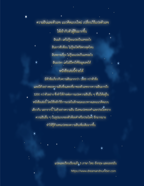 - มีหัวข้อความฝันมากกว่า 1,600 หัวข้อ พร้อมตัวอย่างความฝัน 3,200 กว่าตัวอย่าง